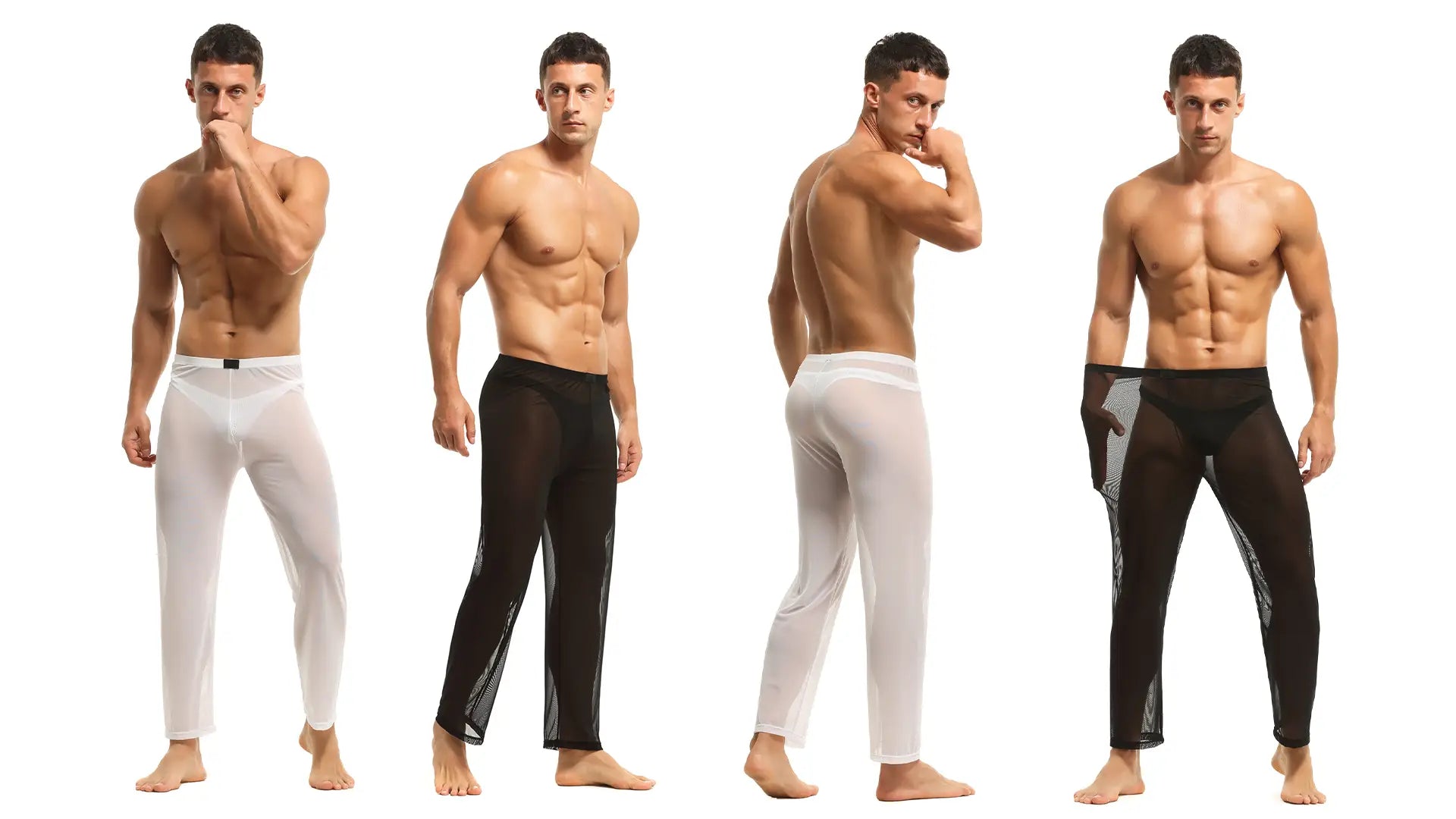 Herren Netz T-Shirt Transparent in Schwarz mit Lack-Leder-Optik und V-Ausschnitt -