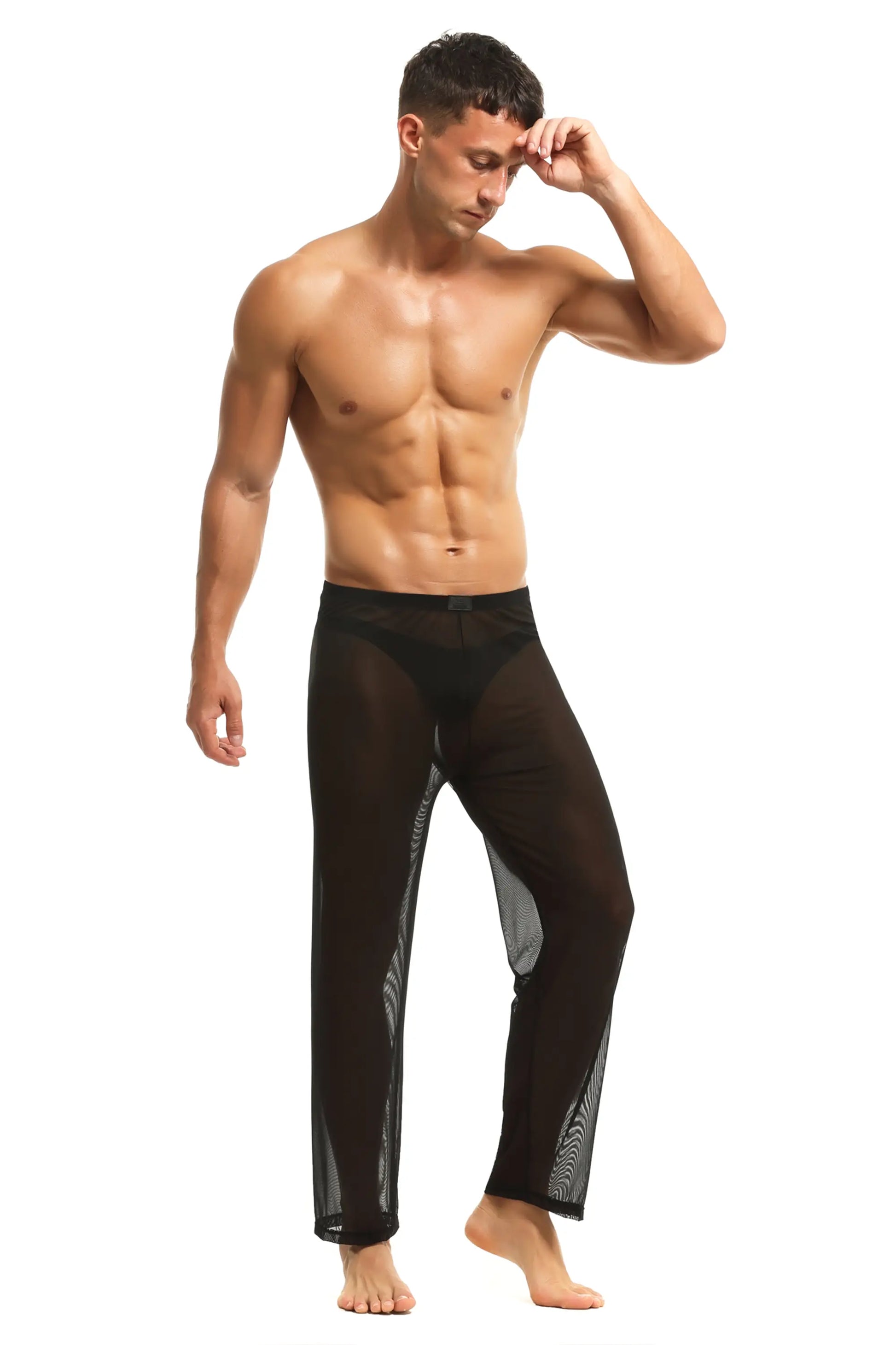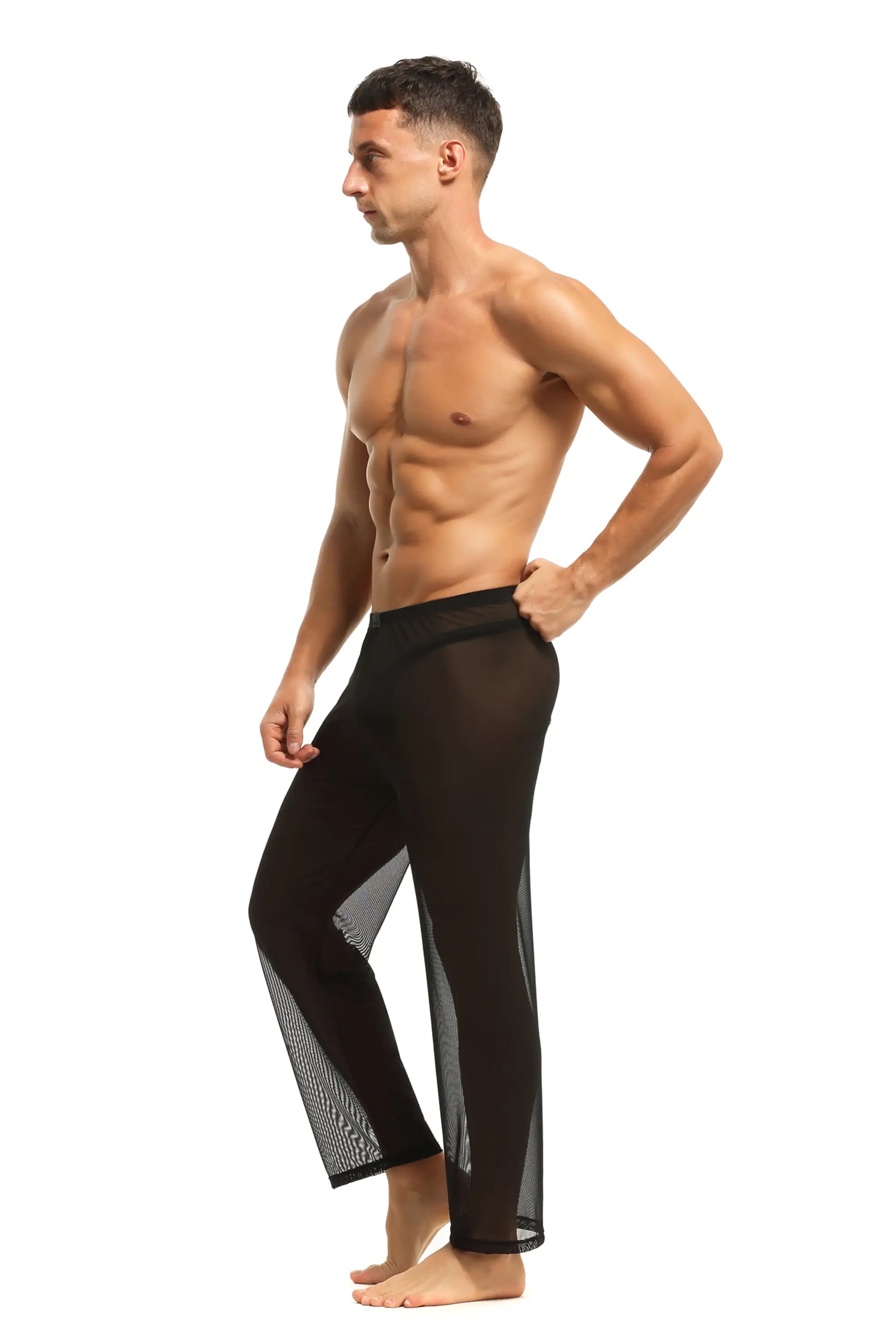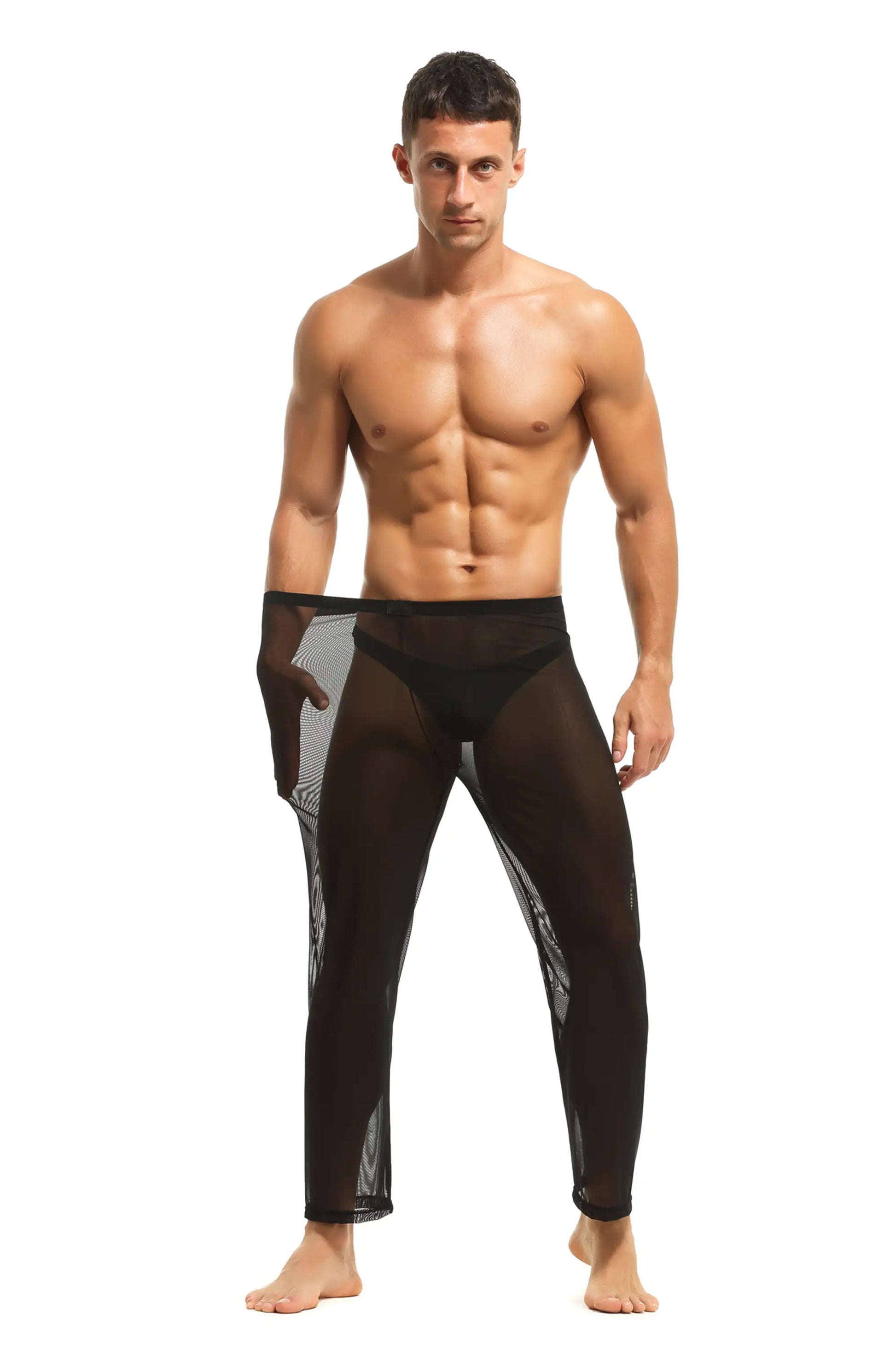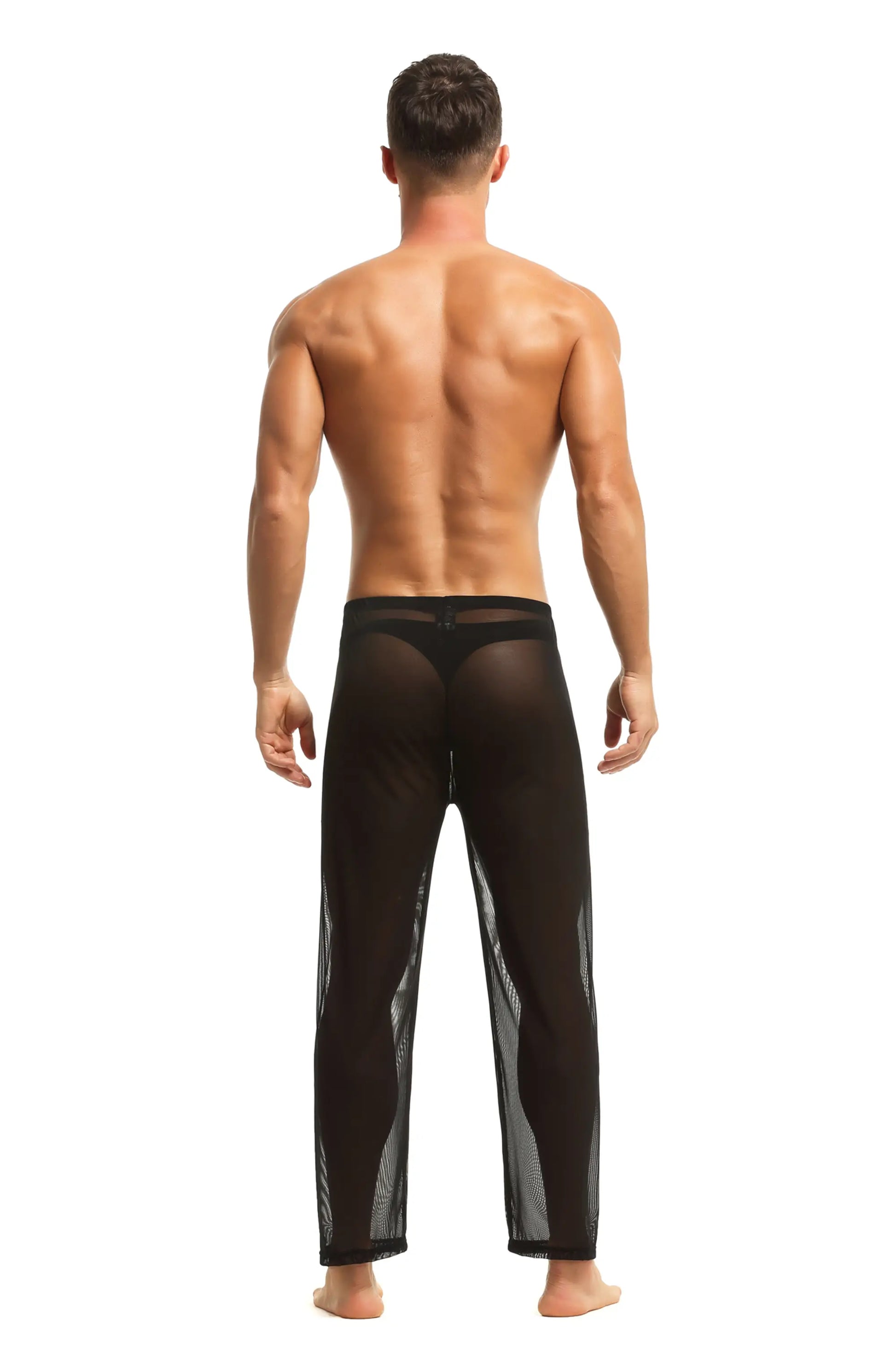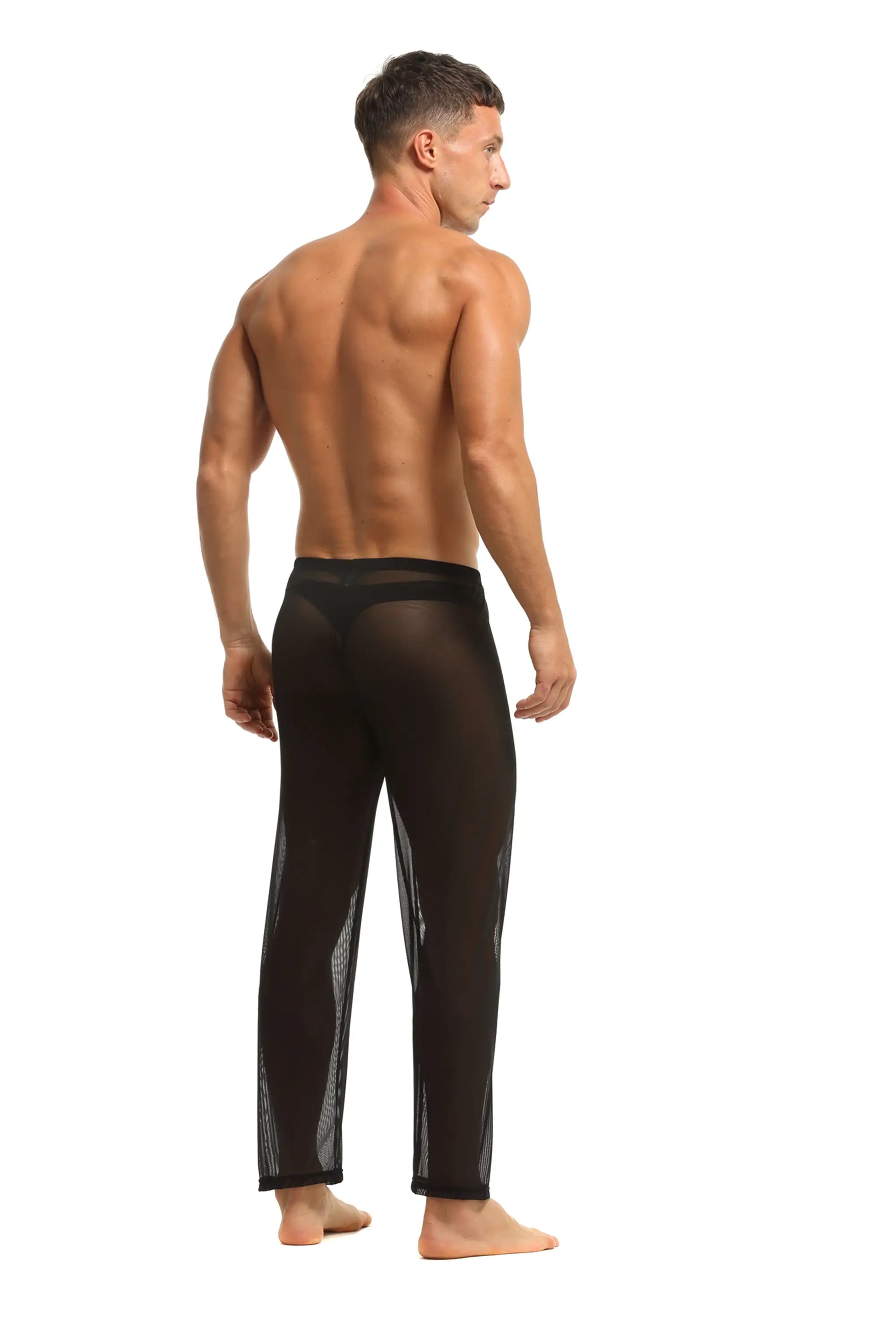 Herren Sheer Hose transparent in Schwarz aus feinster Tüll Stoff Nachtwäsche